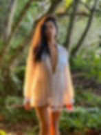 In some moments the light flared brightly through the sheer fabric, warming my skin with a soft golden glow. In others, the jungle wrapped me in shade, creating a quiet, introspective mood where the forest felt deep and mysterious.